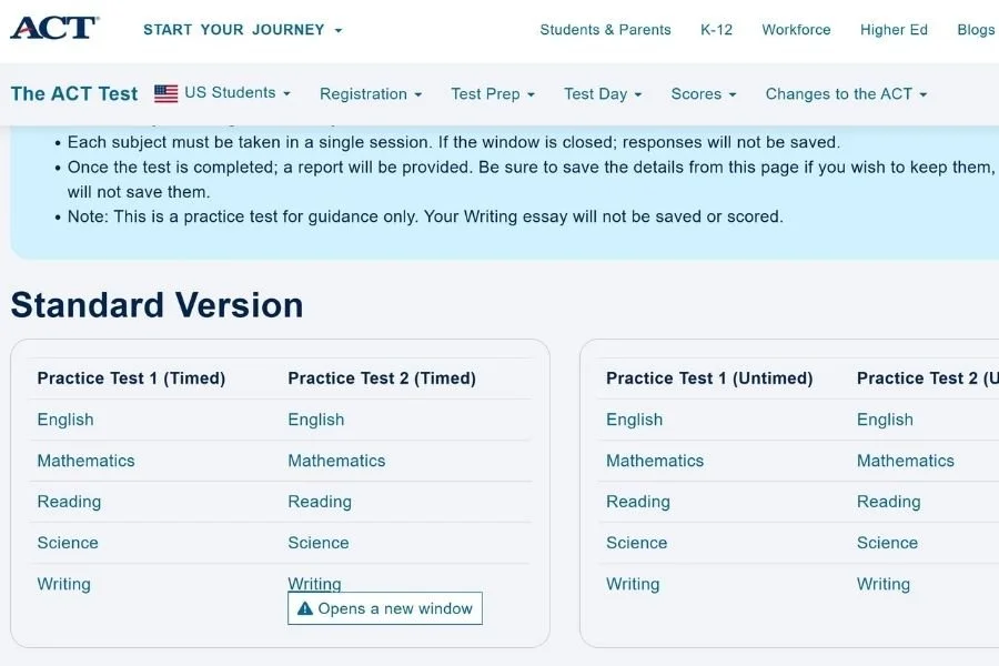The company that makes the ACT has realeased a second enhanced practice test, which is great because there isn’t much prep material for the new ACT format.